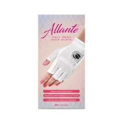 The Orlimar Allante Women’s Half Mesh Finger-less Golf Gloves features a breathable mesh back which keeps you dry and comfortable shot after shot, a synthetic microfiber palm enhances grip strength and open fingertips allow for all lengths of fingernails. Fitting Note: The hand indicated is the hand the glove is worn on. Typically, a right-handed golfer wears a left-handed glove, and a left-handed golfer wears a right-handed glove.
