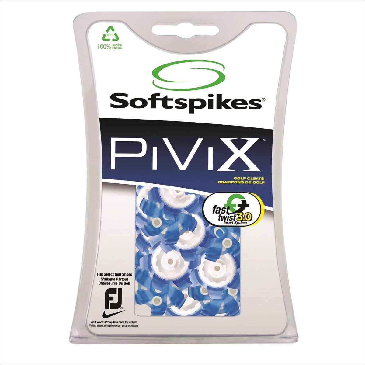 The PiviX is equipped with Fast Twist 3.0 the latest low profile fastening system. This durable cleat has Softspike’s patented “S” wear indicator which turns solid when spikes need to be replaced. Spring flex rotational grip provides ultimate traction during your swing allowing for an extremely stable yet comfortable platform. Fast Twist 3.0 is a backwards compatible system that will fit into any Fast Twist, Tour Lock or Tri-Lok/Slim-Lok receptacle.