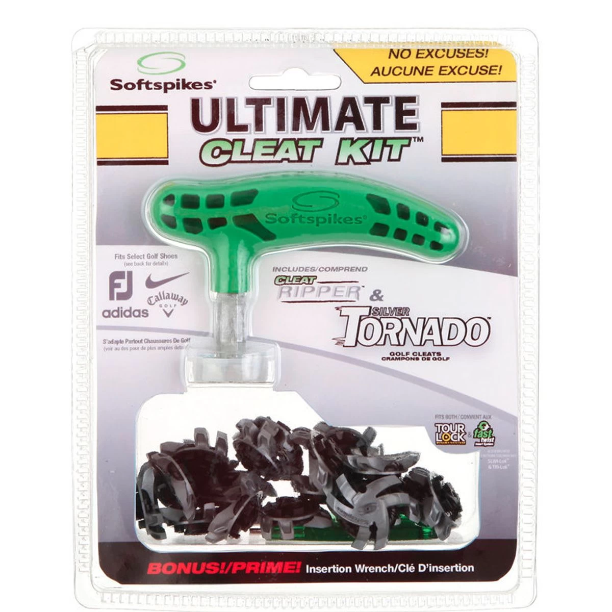 The Ultimate Cleat Kit includes Softspikes new Ripper Wrench, a two-prong insertion wrench, and one set of golf cleats. No excuses, change your cleats today! Silver Tornado is the newest cleat to join the Softspikes family. This cleat incorporates the innovative insert system – Tour Lock. Tour Lock golf cleats are also compatible with Softspikes Fast Twist as well as Champ – SLIM-Lok and Tri-LOK systems.