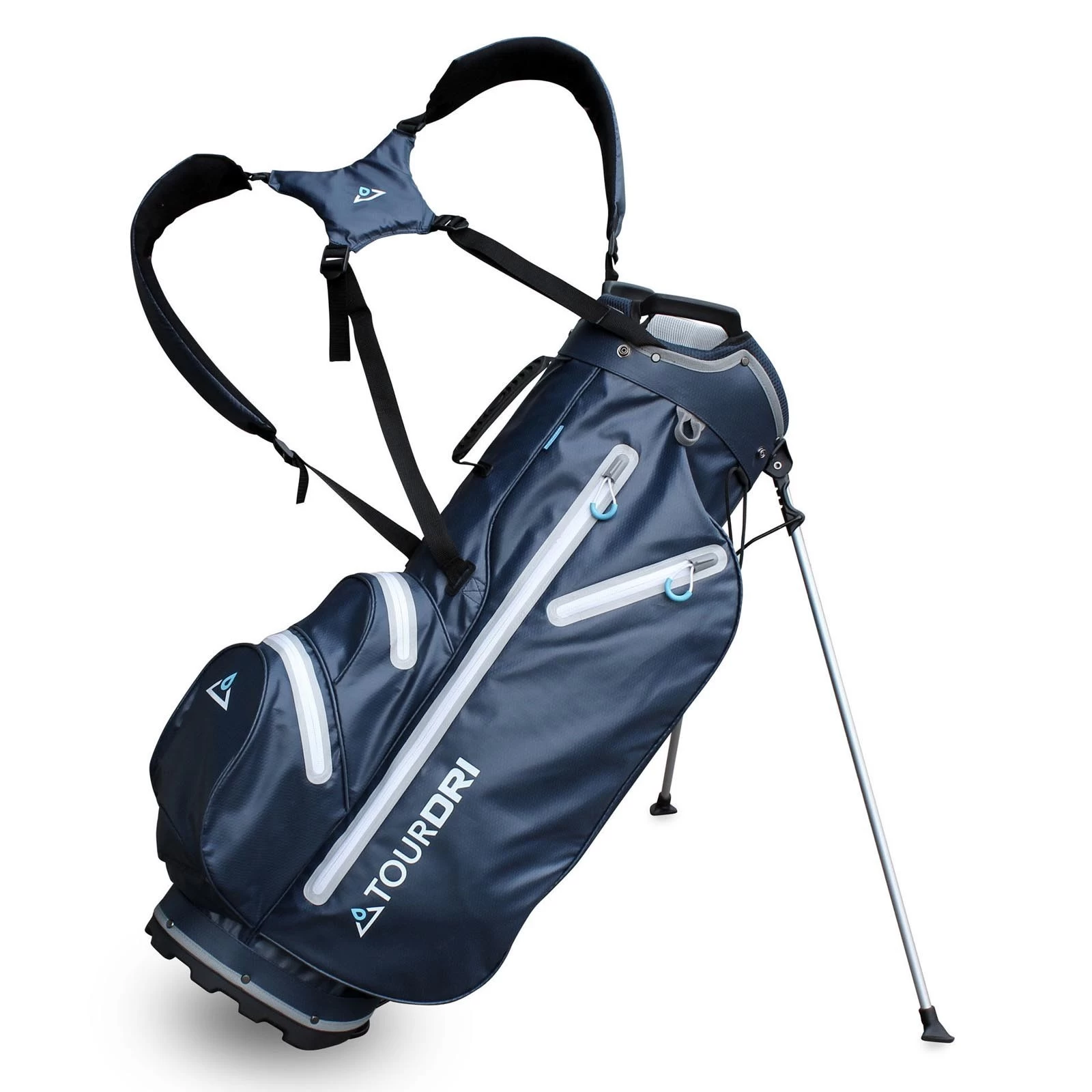 The Masters Tour Dri Waterproof Stand Bag features all the benefits needed for stress-free golf. Fully waterproof with seam-sealed zips to make sure rain doesn’t pass through. The 4-way, full-length divider system helps to keep your clubs tangle-free and perfectly segregated. The high-quality stand mechanism also provides easy, no-fuss operation. The fully adjustable dual shoulder straps ensure equal weight distribution and comfort.