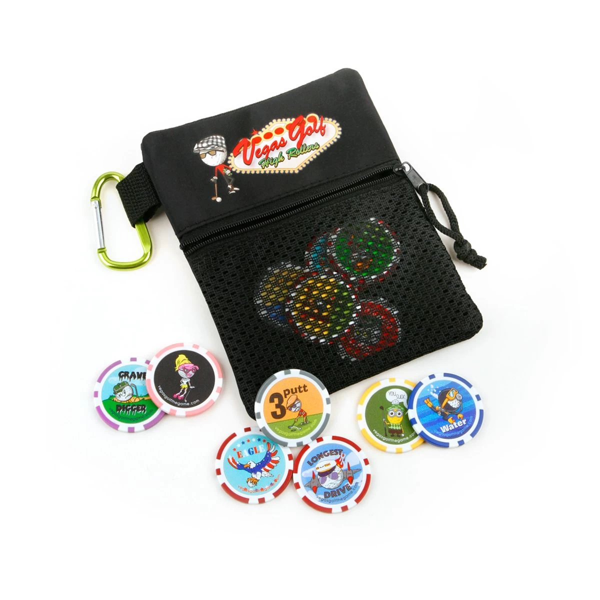 You will have a blast with your Golf Buddies when you break out this VIP Edition “On The Course” game. It begins with golfers agreeing on a value for each chip. Golfers want the positive chips and you want to avoid the negative chips. New Grave Digger… Takes you more than one shot to get out of a sand trap. Your shot goes into the water… you get the water chip. Furthest from pin on a Par 3… gets you the new Beer Chip, which puts you on the hook for a round of beverages when the beer cart comes by.